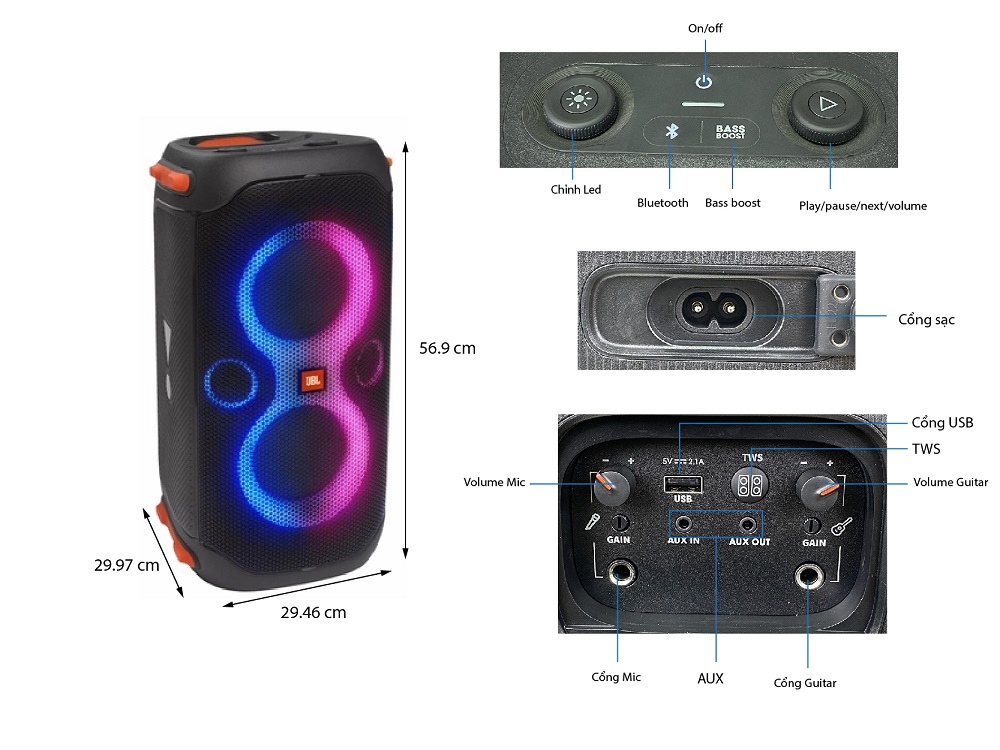- Loa JBVL PartyBox 110 là sự cải tiến mới nhất đến từ người tiền nhiện Partybox 100 trước đó, thiết kế nhỏ gọn vừa vặn có thể xách bằng 1 tay, đèn led tiện lợi, siêu đẹp.