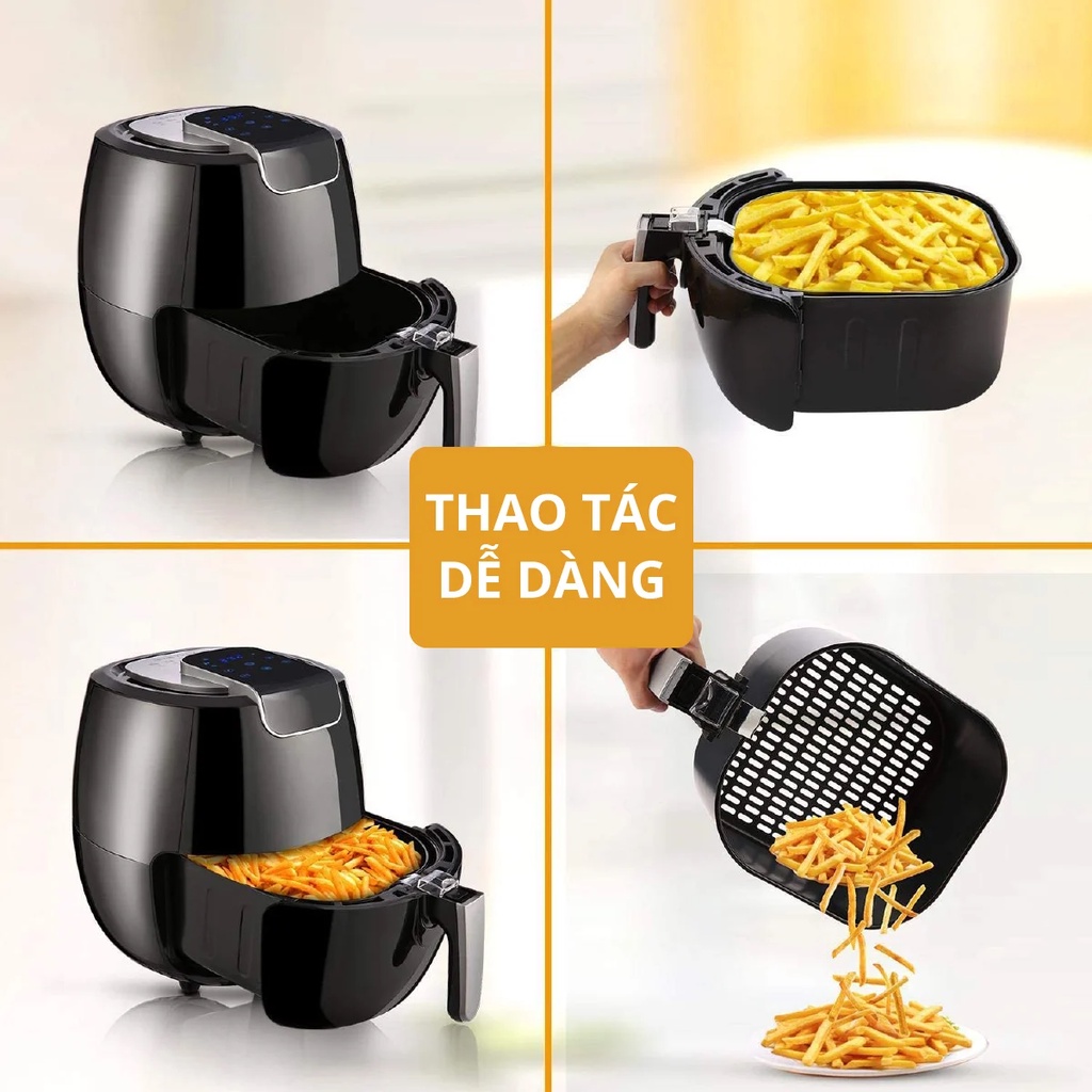 - Tính năng nồi chiên không dầu: Giữ ấm, Màn hình LED, Không dính, Menu cài đặt sẵn, Hẹn giờ